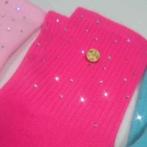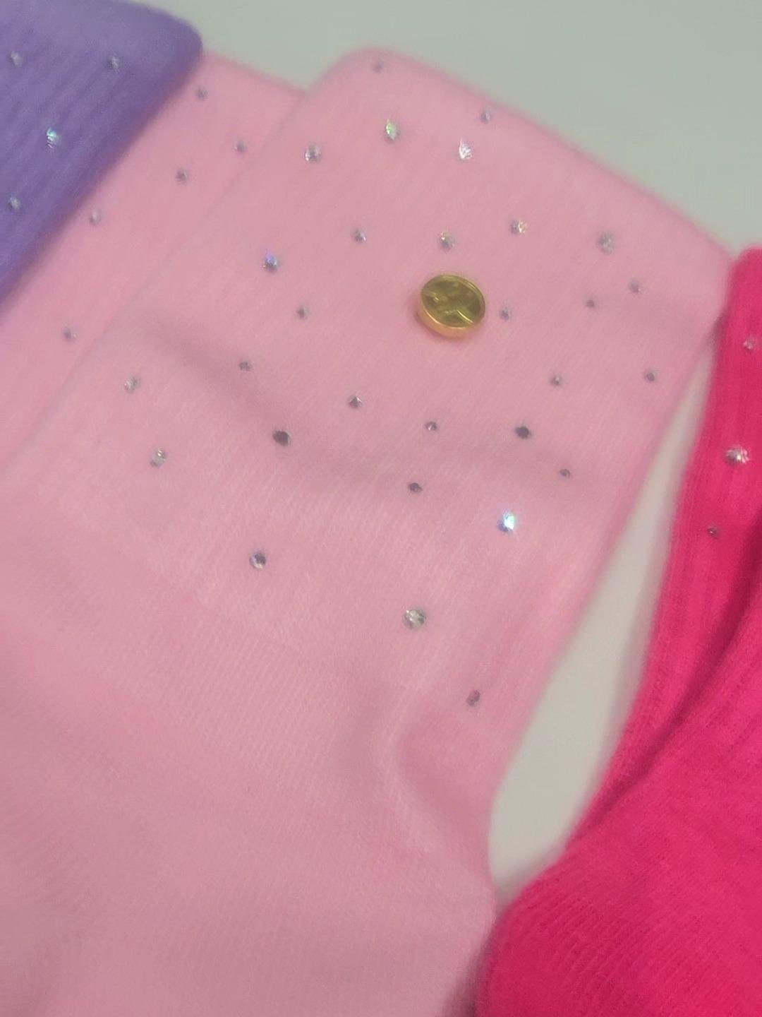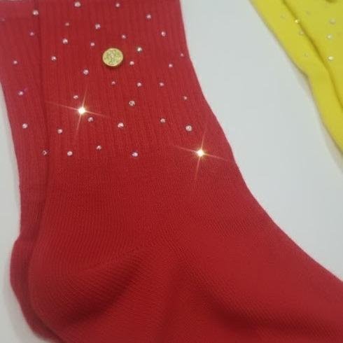 These women’s crystal rhinestones socks are made with genuine crystal rhinestones, ensuring a sparkling appearance. The gold accent rivet button adds a stylish touch. The 100% cotton material provides comfort and softness. Available in various vibrant colors, these socks are perfect for any outfit. 🌈