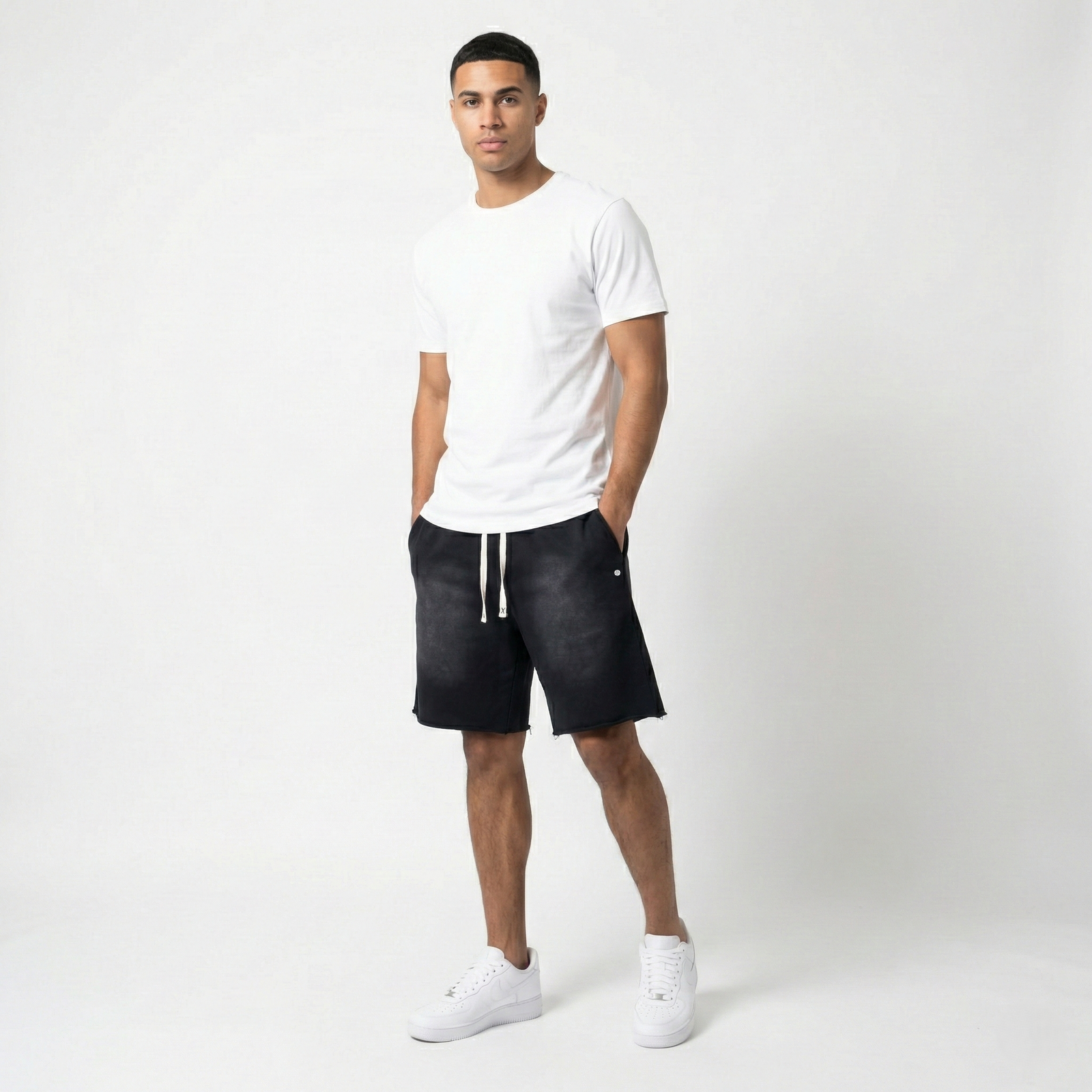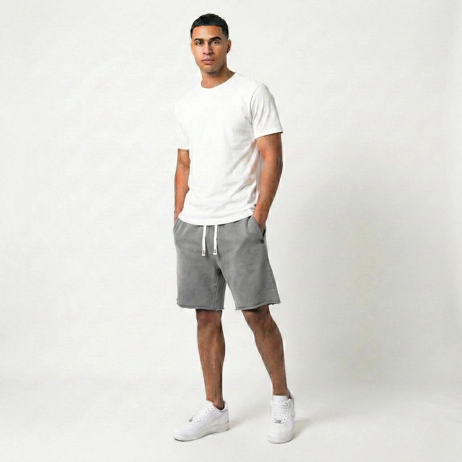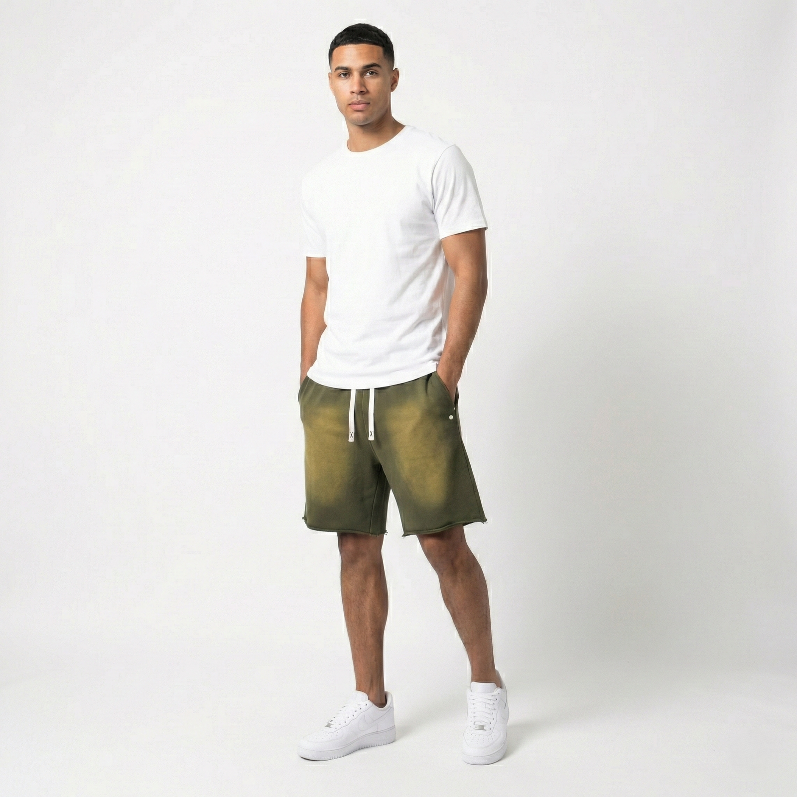 Be the first to review “Men’s Shorts Washed French Terry Cotton by HIGH LEVEL HL Heavyweight 360gsm Raw edge Knee Length – Black, Tan, Army Green Menswear Athletic”